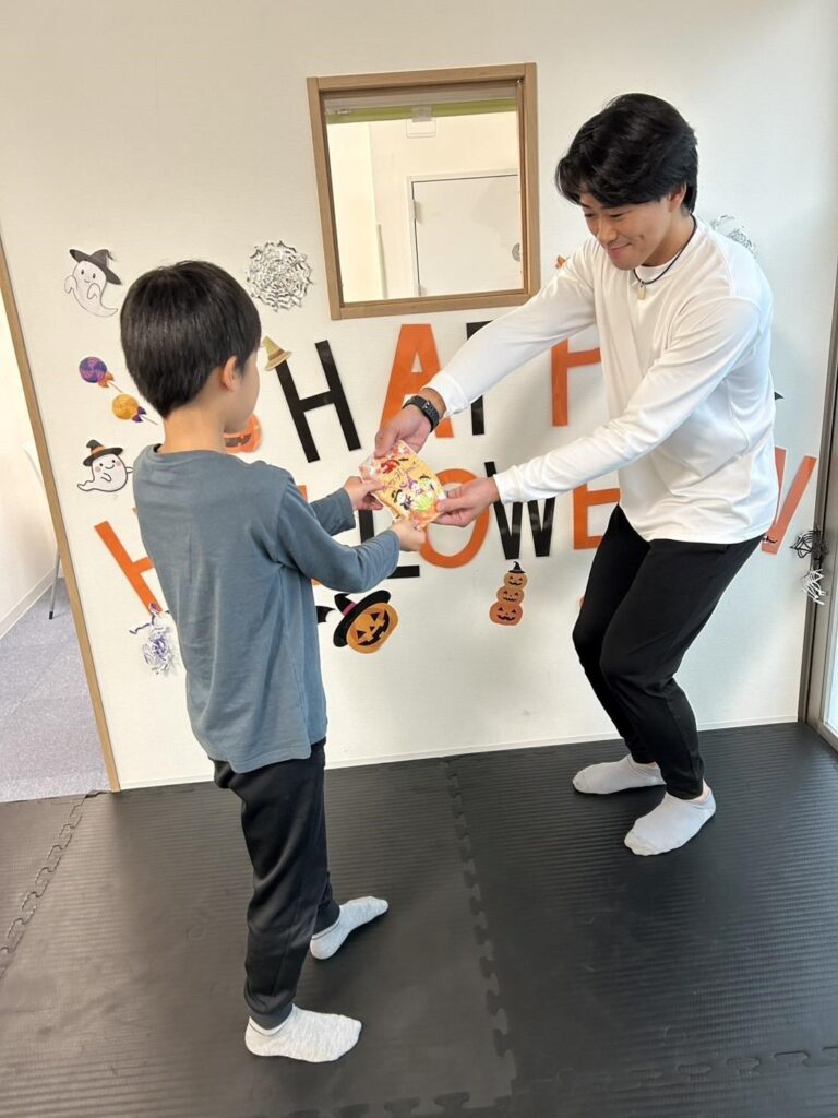 ハロウィンの1週間前から当日にはお菓子もお渡ししました。お菓子をもらう前には「Trick or treat!」と元気に呪文を唱える子供もいてとても微笑ましかったです!